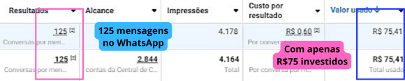 Com R$75,41 uma das nossas unidades recebeu 125 mensagens de clientes no WhatsApp e consegui converter 15 planos mensais de R$600, aumentando em R$9.000,00 o FATURAMENTO!
